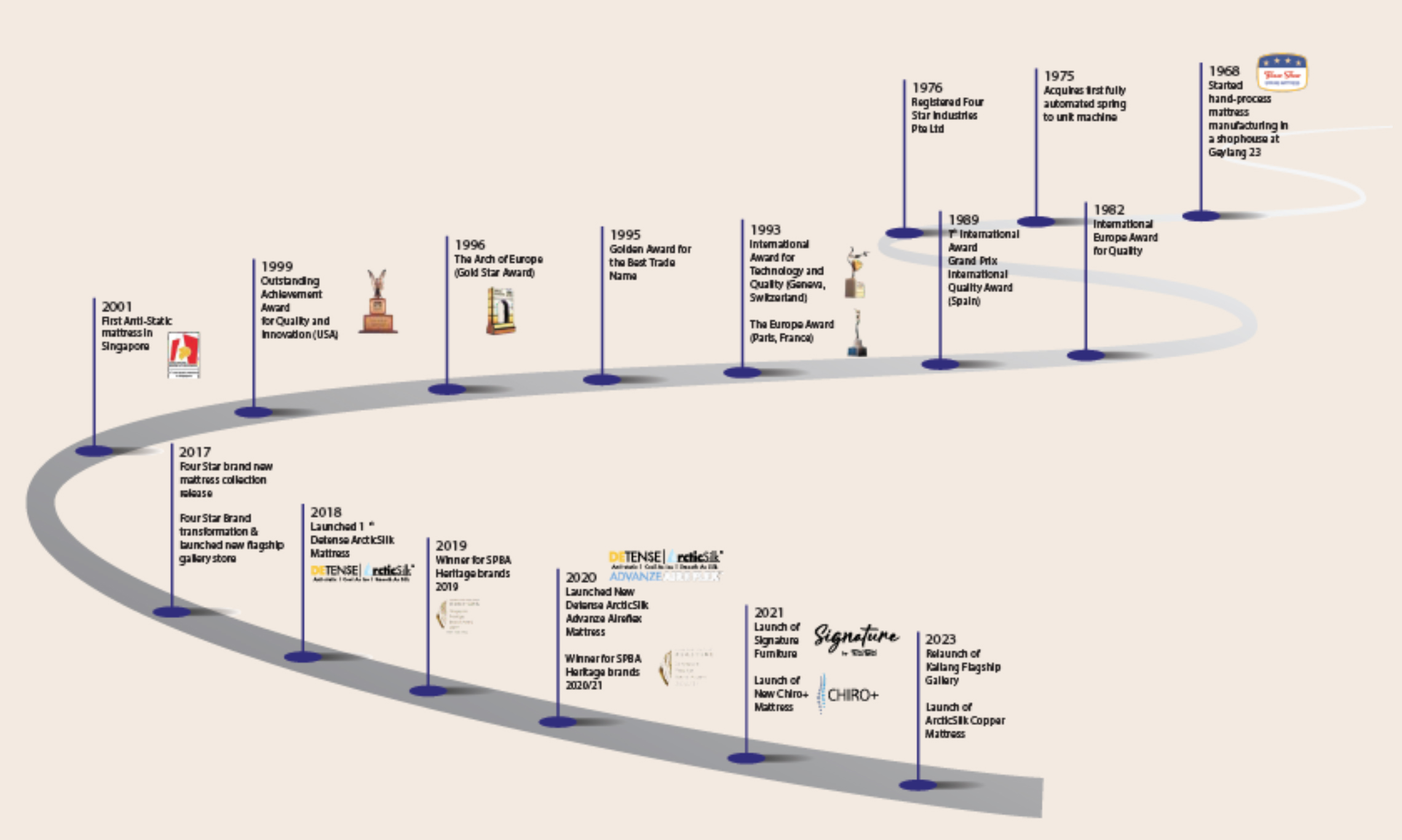 Four Star Industries is proud to be a winner of the honorary Singapore Prestige Brand Award: SPBA —Heritage Brands under the Heritage category, we won the Most Popular Brand and Overall Winner for our catergory, we were accoladed with Hall of Fame as well. Four Star, a well-known brand for mattresses, realised that the market was constantly changing and began to transform five years ago.