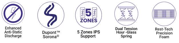 Introducing the all-new Advanze Aire Flex technology for multi-dimensional support and air flow, with our renowned anti static and cooling DETENSE ArcticSilk® fabric for a cooling and restful night’s sleep.